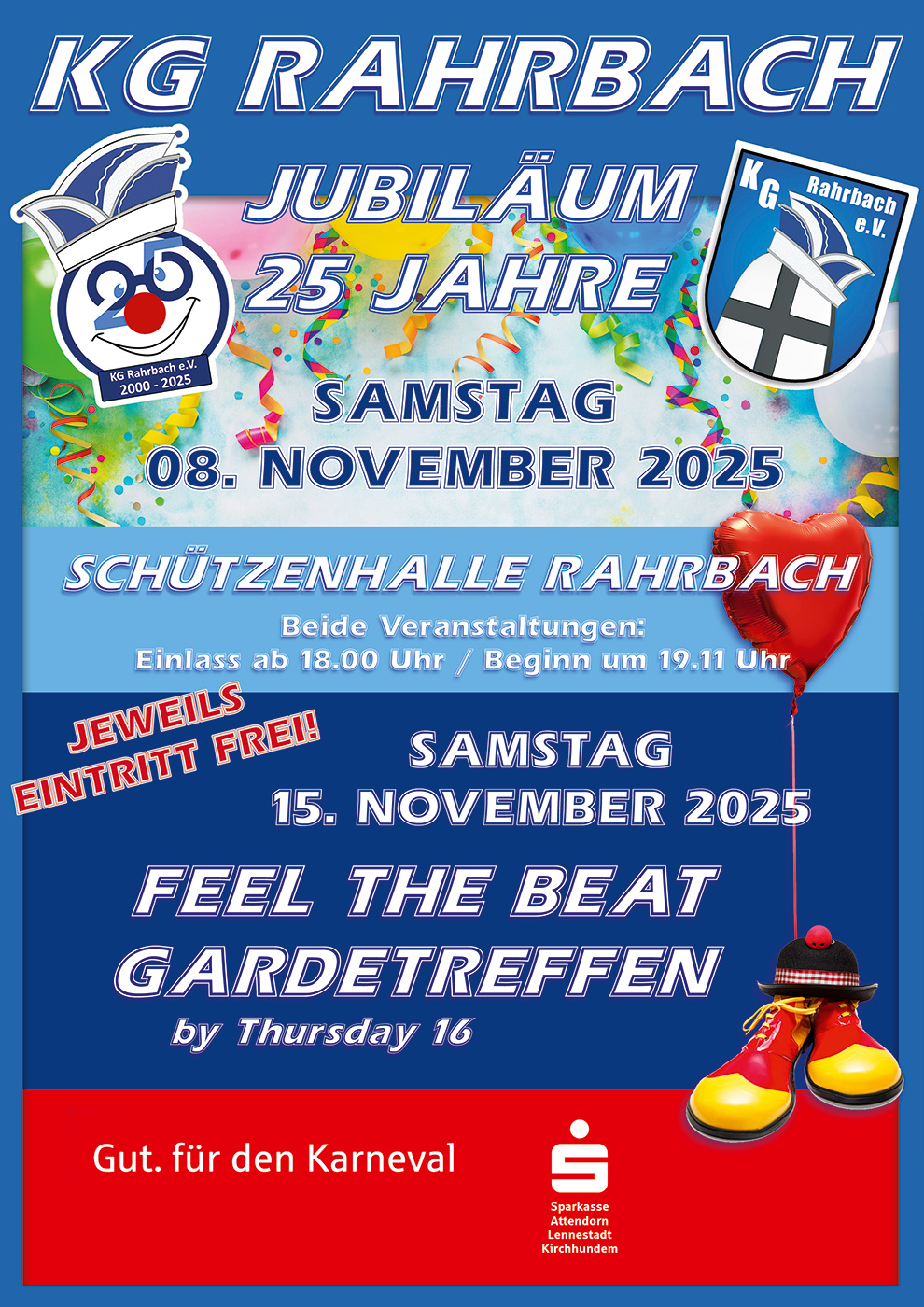 Am 08. November 2025 wird das 25-jährige Jubiläum der KG Rahrbach gefeiert.